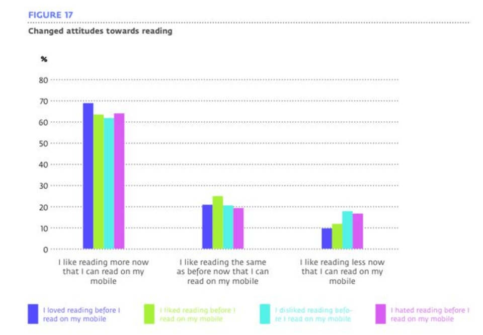 Data collected by United Nations University shows a significant increase in positive attitudes around reading after having access to a mobile phone.