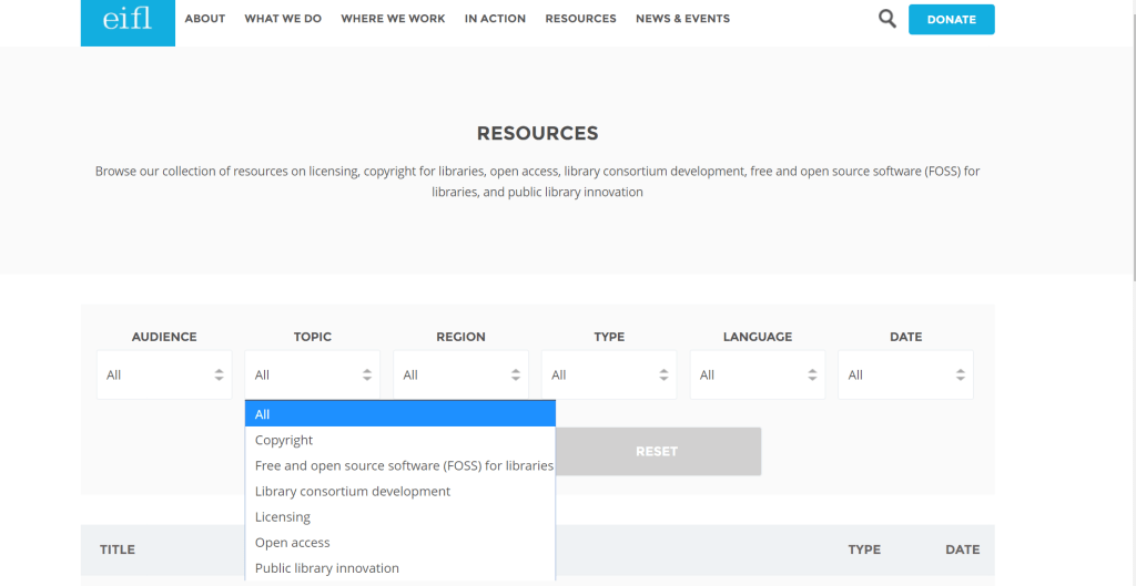 While reading my way through feedly, I was able to find a wide range of global initiatives that work to connect libraries across the globe to important information. I was struck particularly by Melissa Hunt’s post, which alerted me to the existence of Electronic Information for Libraries (EIFL). It is a global organization that connects librarians around the world to technology and information. I was especially struck by their website because the site was truly accessible and would not require top of the line devices to access it – the website offers a text only option that would make access possible on older models of cell phones, or older web browsers. This accessibility makes connection a possibility for all. They also connect users to Free and Open Source Software, along with other important topics for library development.